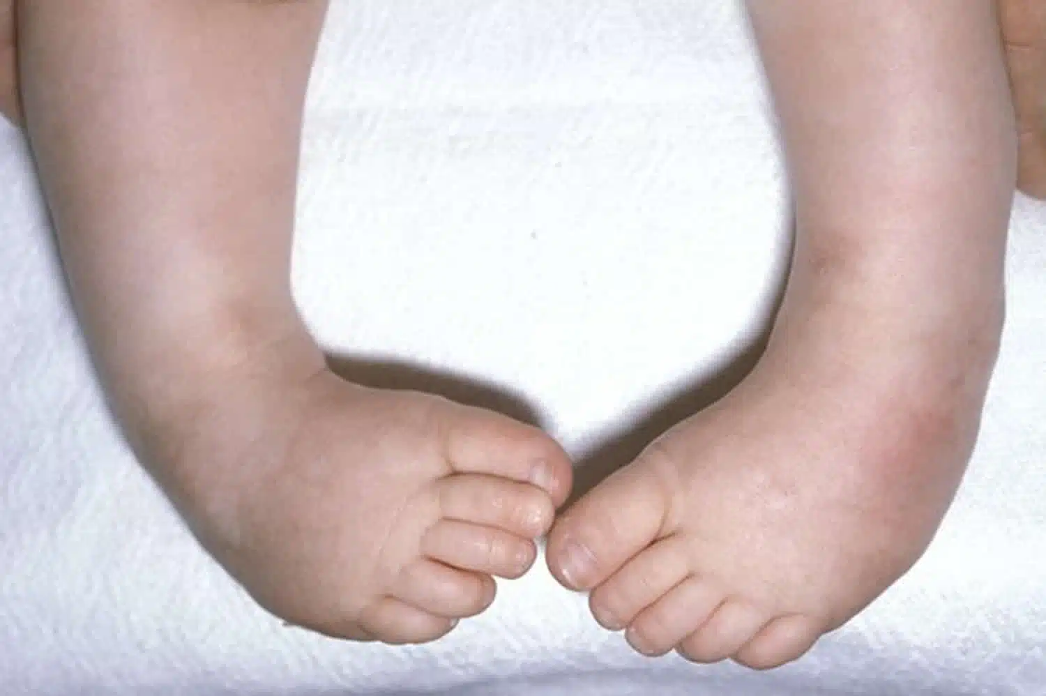 - لو كان المريض يعاني من الإصابة في قدم واحدة فحينها تبدو القدم المصابة أصغر في الحجم وأكثر صلابة من القدم السليمة.