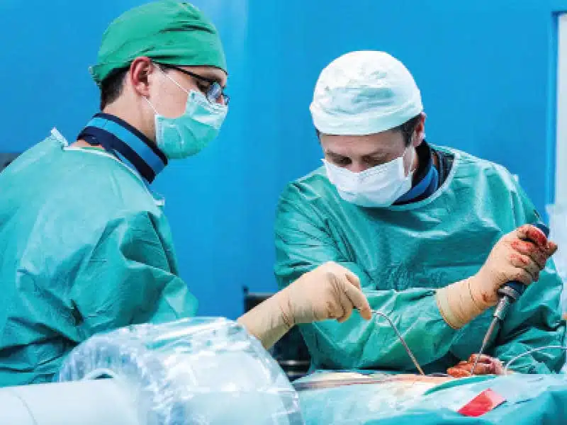 - بعد التأكد من سلامة الوضع يتم تعقيم المنطقة بالكامل وإغلاق الثقوب بغرز طبية.