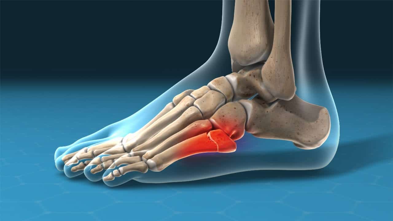 كسر مشط القدم من الإصابات التي تضر العظام الخمسة الواقعة بين أصابع القدم والكاحل، وتحدث نتيجة لأسباب مختلفة منها السقوم أو الحوادث أو الإصابات الرياضية، ويتراوح كسر مشط القدم في شدته من الكسور البسيطة إلى الكسور المعقدة باختلاف الأعراض؛ لذا من المهم التشخيص المبكر للكسر والعلاج الصحيح لمنع تفاقم الإصابة وحدوث مضاعفات في الالتئام، وهذا ما نوضحه في المقال التالي لنتعرف على أنواع كسور المشط وخيارات العلاج التحفظي والجراحي ومدة الالتئام.