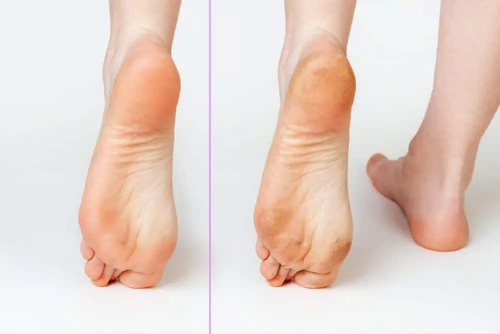- ظهور الكعب بشكل غريب بحيث يكون منحرفا للخارج قليلا.