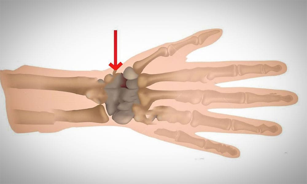 - تعرض العظمة الزورقية للكسر يؤدي إلى تحركها من مكانها.