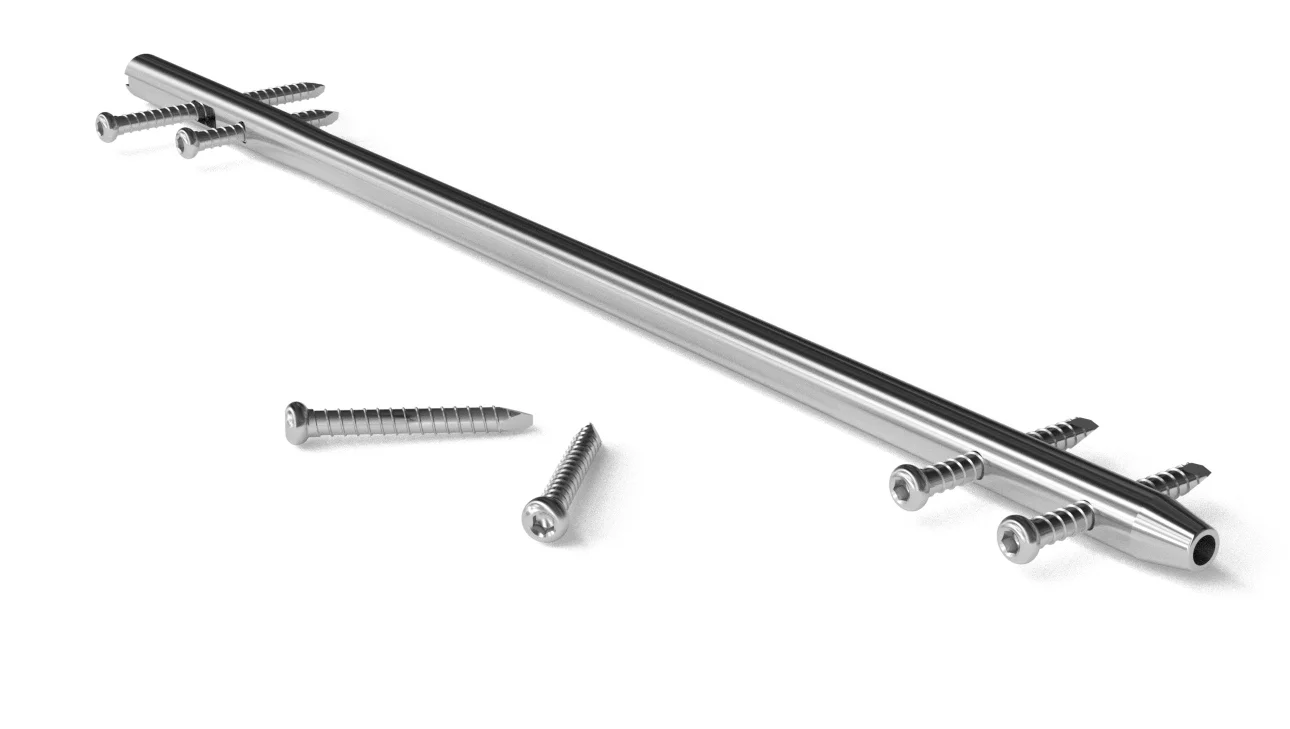 المسمار النخاعي: هو عبارة عن مسمار معدني يتم زرعه في تجويف نخاع العظام ويتم استخدامه من أجل علاج كسور العظام الطويلة في الجسم، حيث أن المسامير يتم صنعها من التيتانيوم، وتعمل كجبيرة داخلية بحيث تقوم بتدعيم العظام وجعلها قادرة على حمل الوزن بطريقة أفضل.