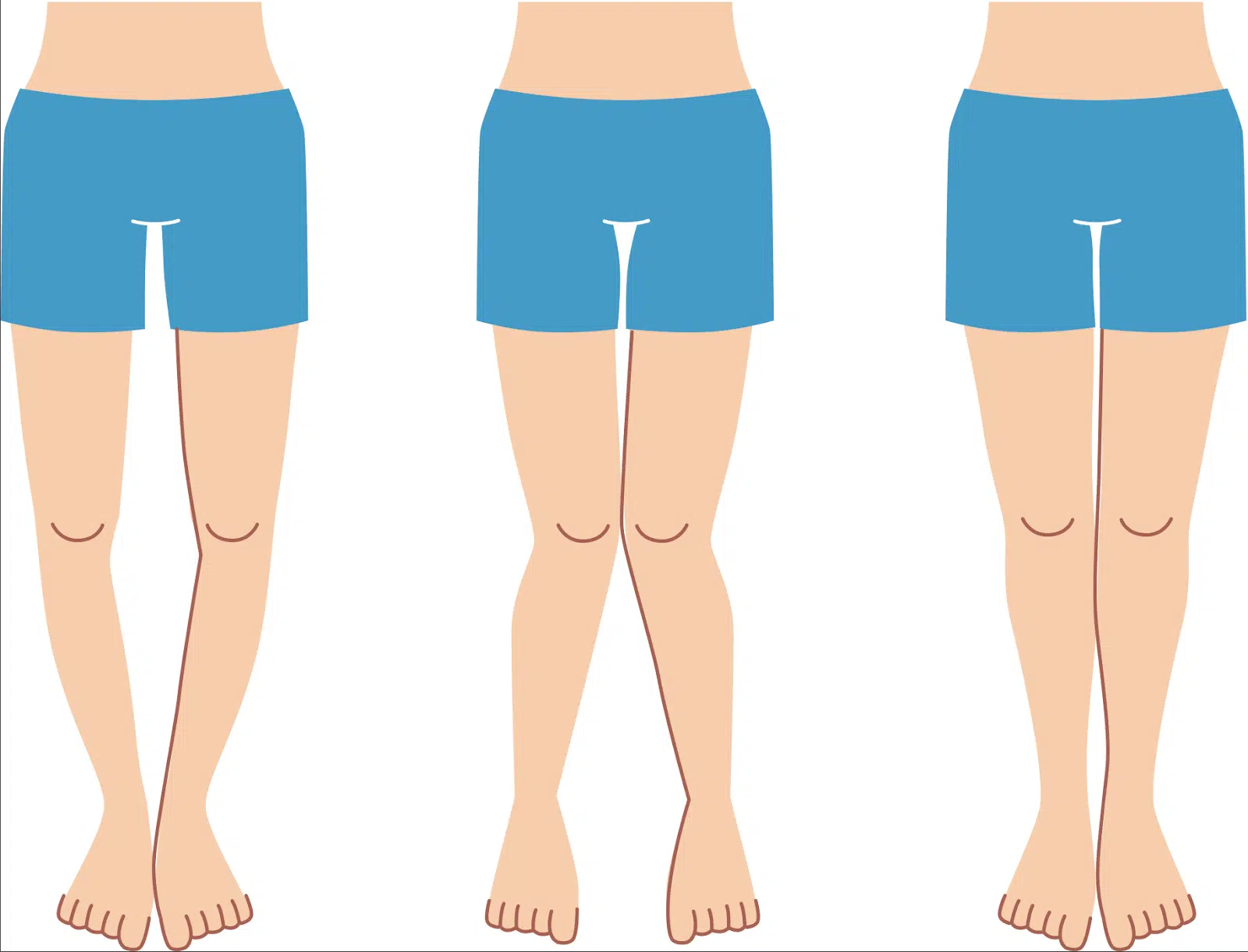 - تقوس الساقين الداخلي: يعد من الحالات التي يتعرض لها الإنسان منذ الولادة إلا أن مع التقدم في العمر تبدأ بالاختفاء وتظهر الساق بالشكل الطبيعي، إلا أن في بعض الحالات قد يستمر التقوس فتصبح الركبتين قريبتين من بعضهما مع ابتعاد الساقين، ويطلق عليها بعض الأطباء بالتصاق الفخذين.